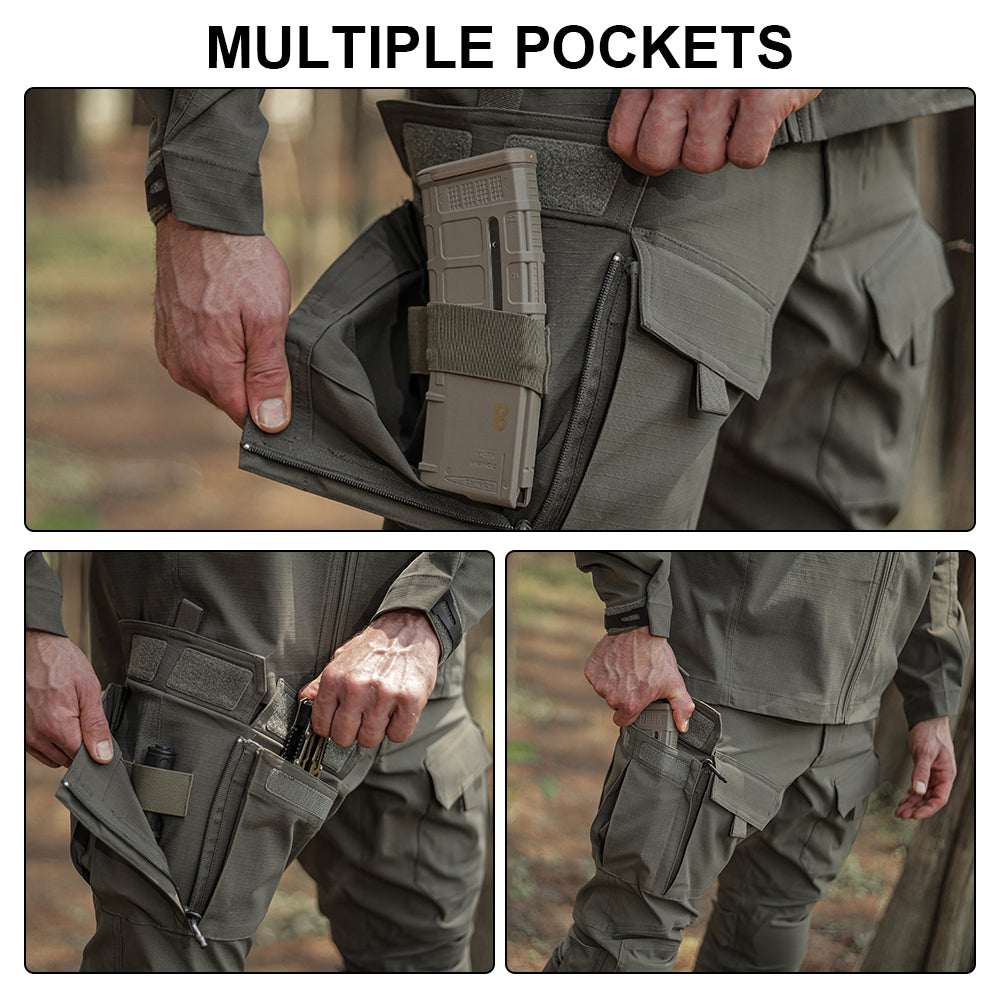 5. Large-capacity thigh pockets with an elastic MOLLE storage system on the inner side of the pockets. The zippered pockets can be fully opened for easy storage.