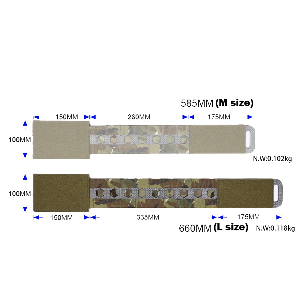 The cummurbund (L size) of is used as an additional replacement accessory for the EM9650 Emersongear FRO Style V5 Plate Carrier. The original cummurbund comes is of M size, which is compatible with a maximum chest size of 94CM, while with this replacement cummurbund (L size), the EM9650 Emersongear FRO Style V5 Plate Carrier can accommodate a maximum chest size of 114CM. Tergis Sheet is used and laser MOLLE system is designed to minimize product weight for better maneuverability.