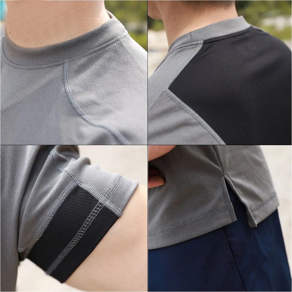 2. Polyester checkered breathable mesh is spliced under the armpit and back to keep sweaty areas dry and dry quickly.