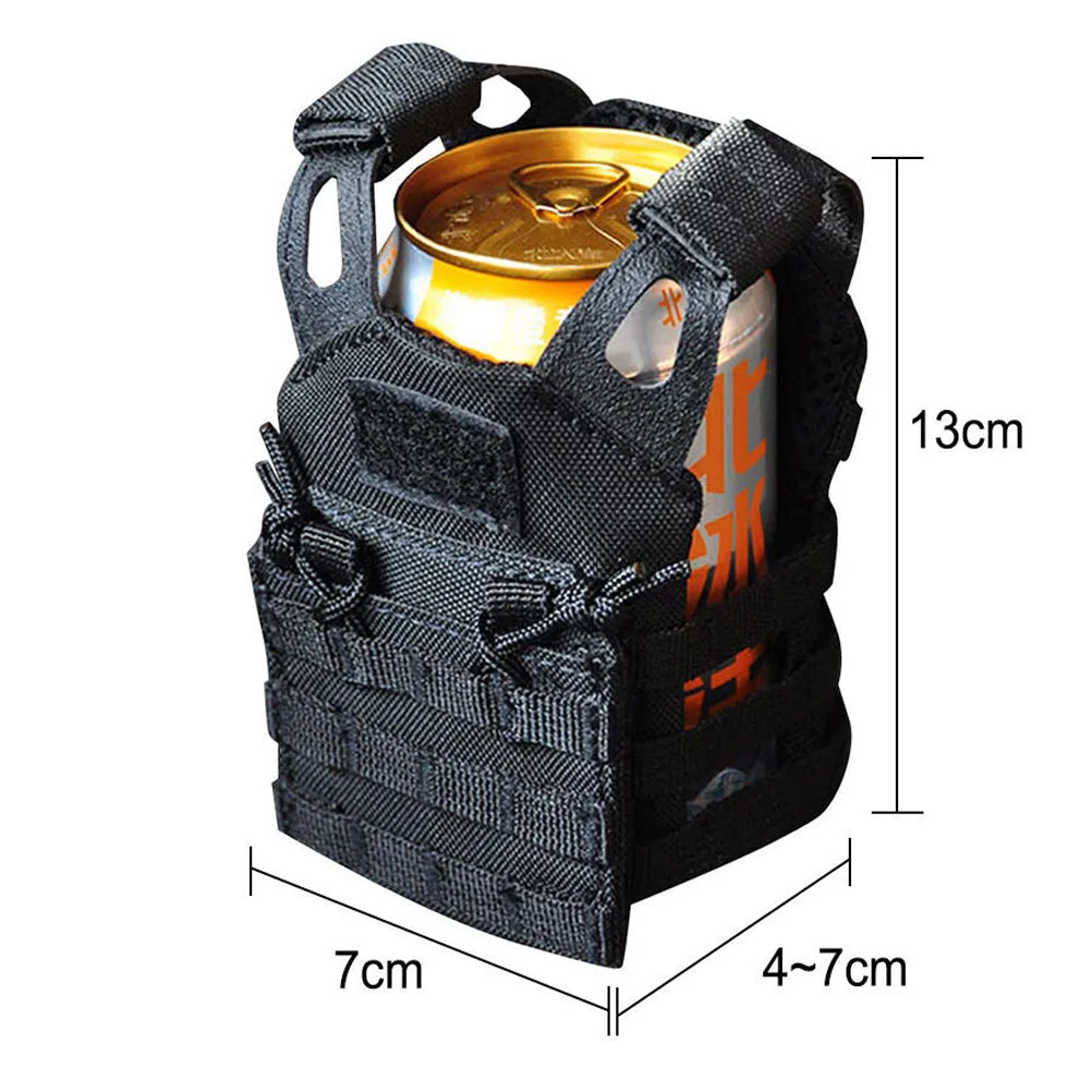 DIMENSIONS:13-15CM*12-14CM TACTICAL DESIGN: This beverage cooler design is inspired by a molle tactical vest. This unique design will have your can or bottle looking great.