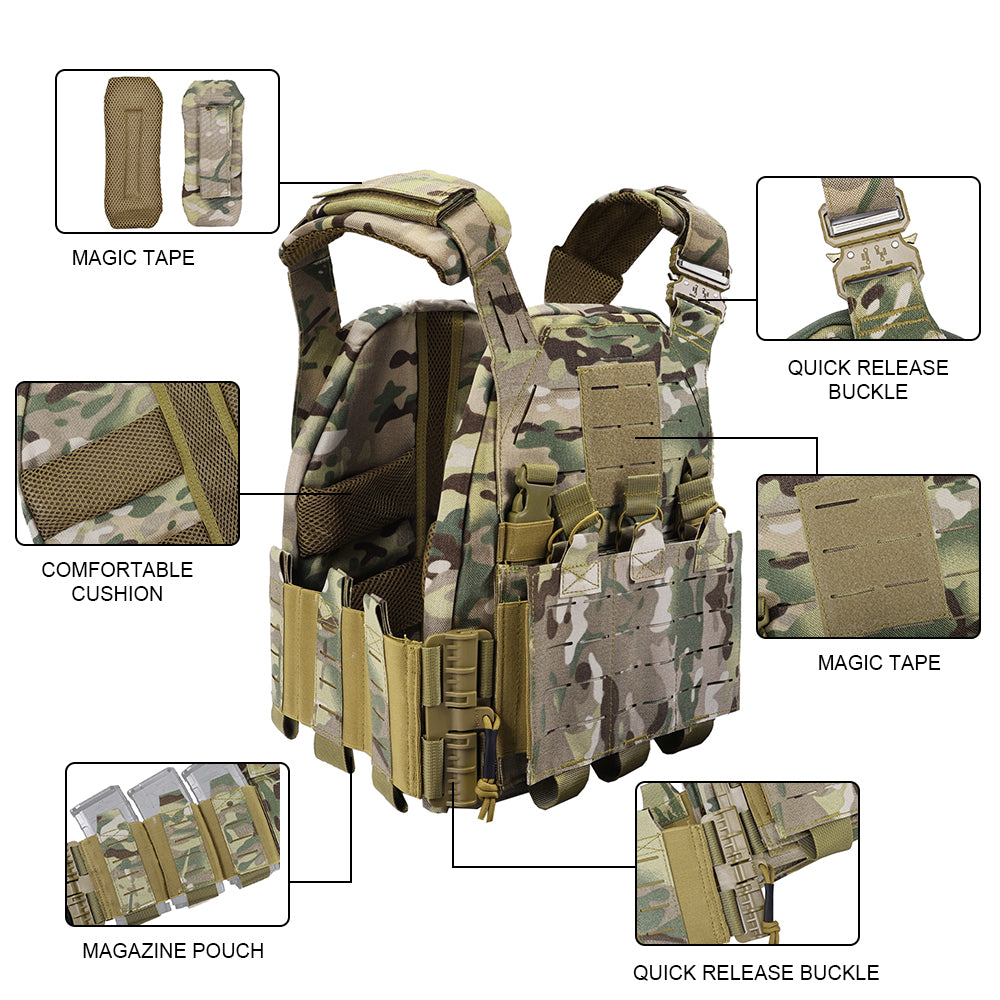SINAIRSOFT Tactical Vest Adjustable CS Plate Carried Vest Quick Release laser cut